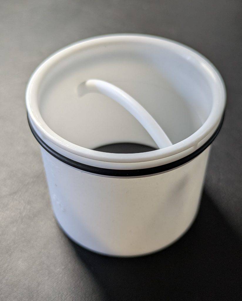 Das gesuchte Teil ist ein ziemlich schlichter Gefährte des Alltags. Der Einsatz besteht aus einem weißen Plastikrohr im Durchmesser von sieben und der Höhe von sechs Zentimetern.